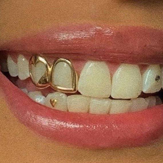Custom grillz and tooth caps are personalized teeth accessories, often made of gold or diamonds, designed to fit over your teeth for a bold, stylish look.