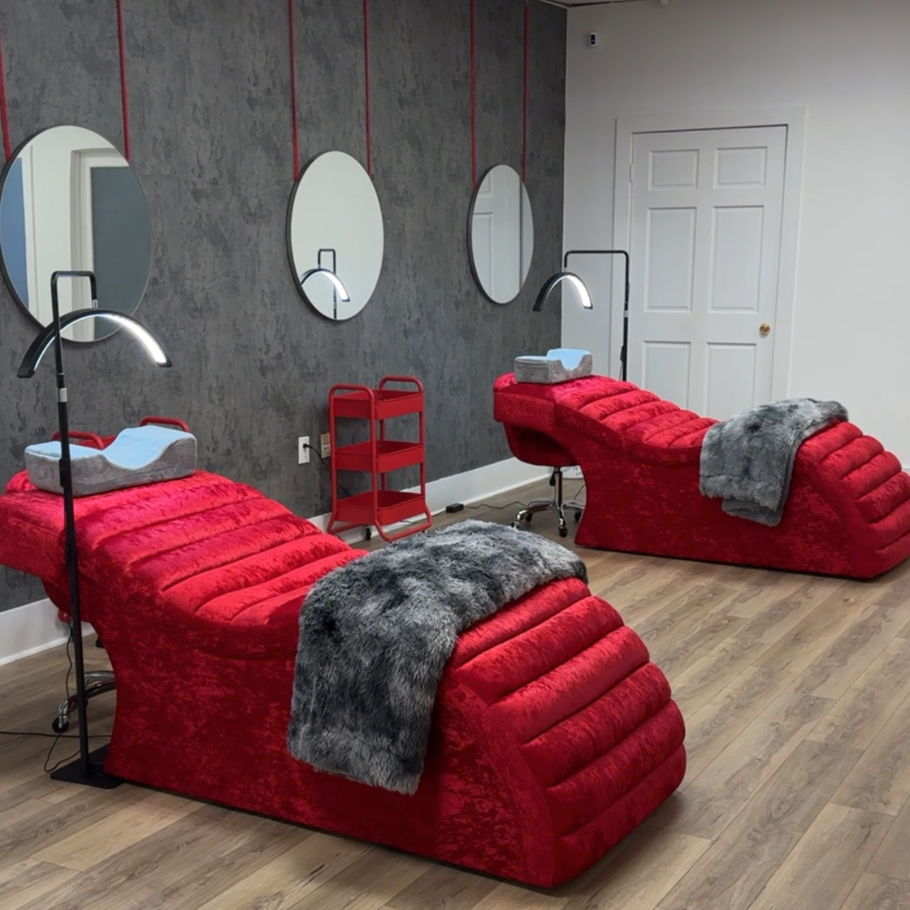 Private salon suites and open area booths available for rent. Suites require a lease. Booths can be leased long term or daily.